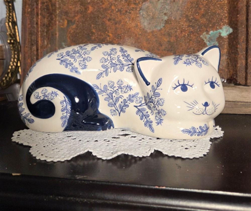 Darling ceramic blue and white cat. I bet nobody on your block has something like this! How unique!