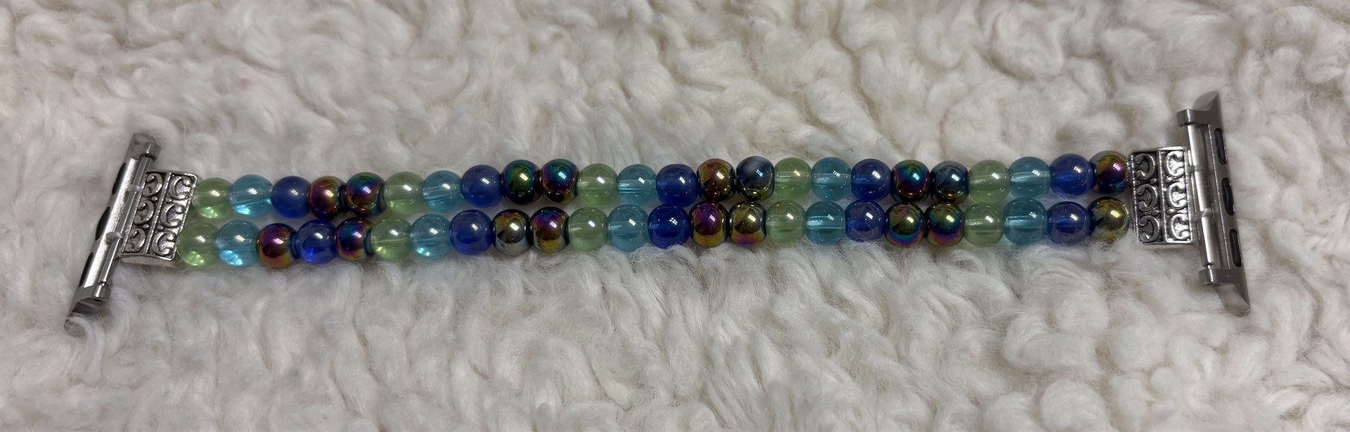 This band measures 7.5 inches with a watch face. It fits 38/40/41/42 mm smart watches.
