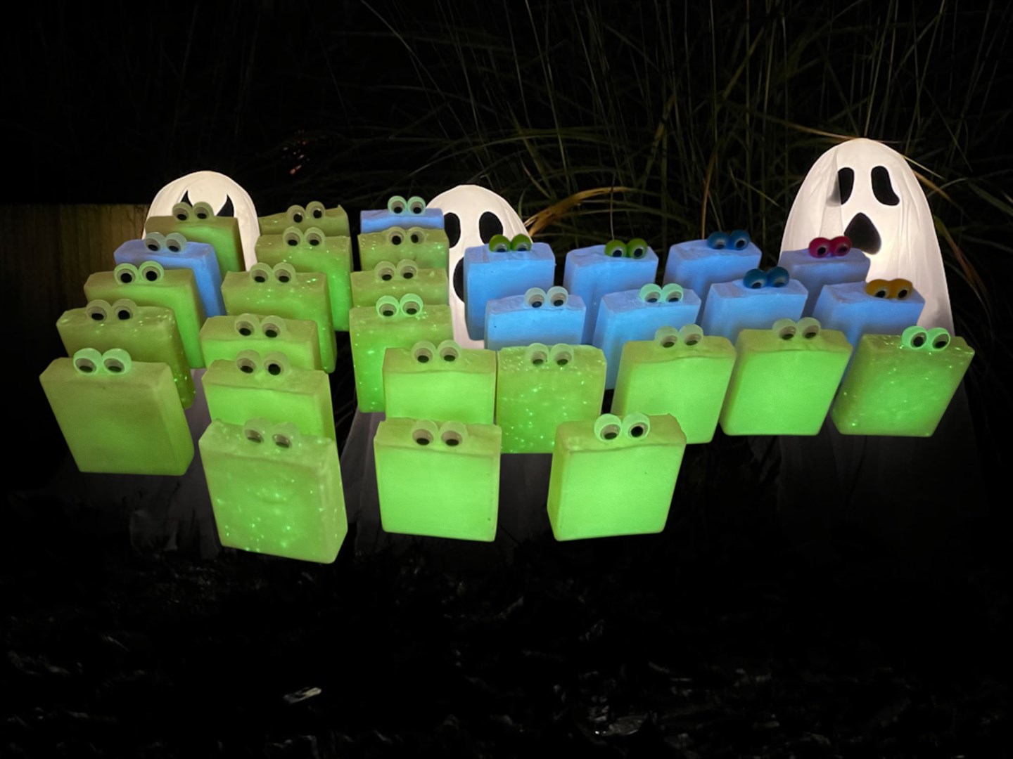 These fun glow in the dark ghosts are unscented, with little rings for eyes
